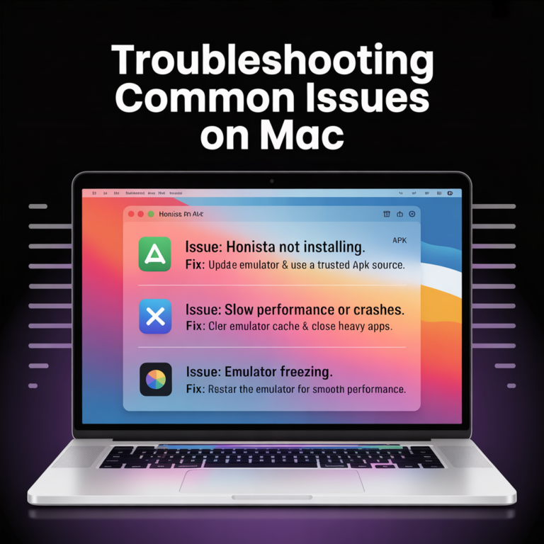 Another common issue is slow performance or app crashes. This can be fixed by clearing the cache inside the emulator or closing other heavy apps running on your Mac. Restarting the emulator also helps in most cases, making Honista work smoothly again.
