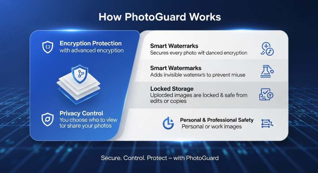 This photo locker is a smart and reliable tool for protecting your photos. It keeps your pictures safe with features like encryption, watermarks, and privacy settings. Anyone can use it, whether for personal memories or professional work.In today’s digital world, keeping photos secure is very important. With PhotoGuard, you get peace of mind, simple controls, and strong protection. It is an easy choice for anyone who values safety and privacy.